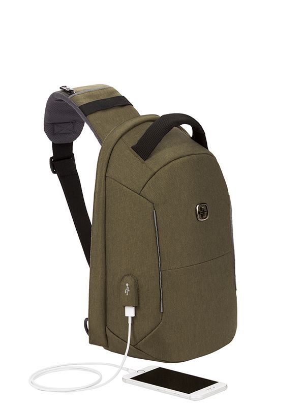 Рюкзак-антивор SWISSGEAR, хаки, Heather 600D, 21 x 12,5 x 34 см, 8,5 л