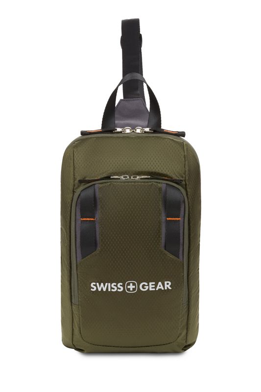 Рюкзак SWISSGEAR с одним плечевым ремнем, зеленый/оранжевый, полиэстер с плетением рип-стоп с двумя армированными нитями, 18 x 5 x 33 см, 4 л